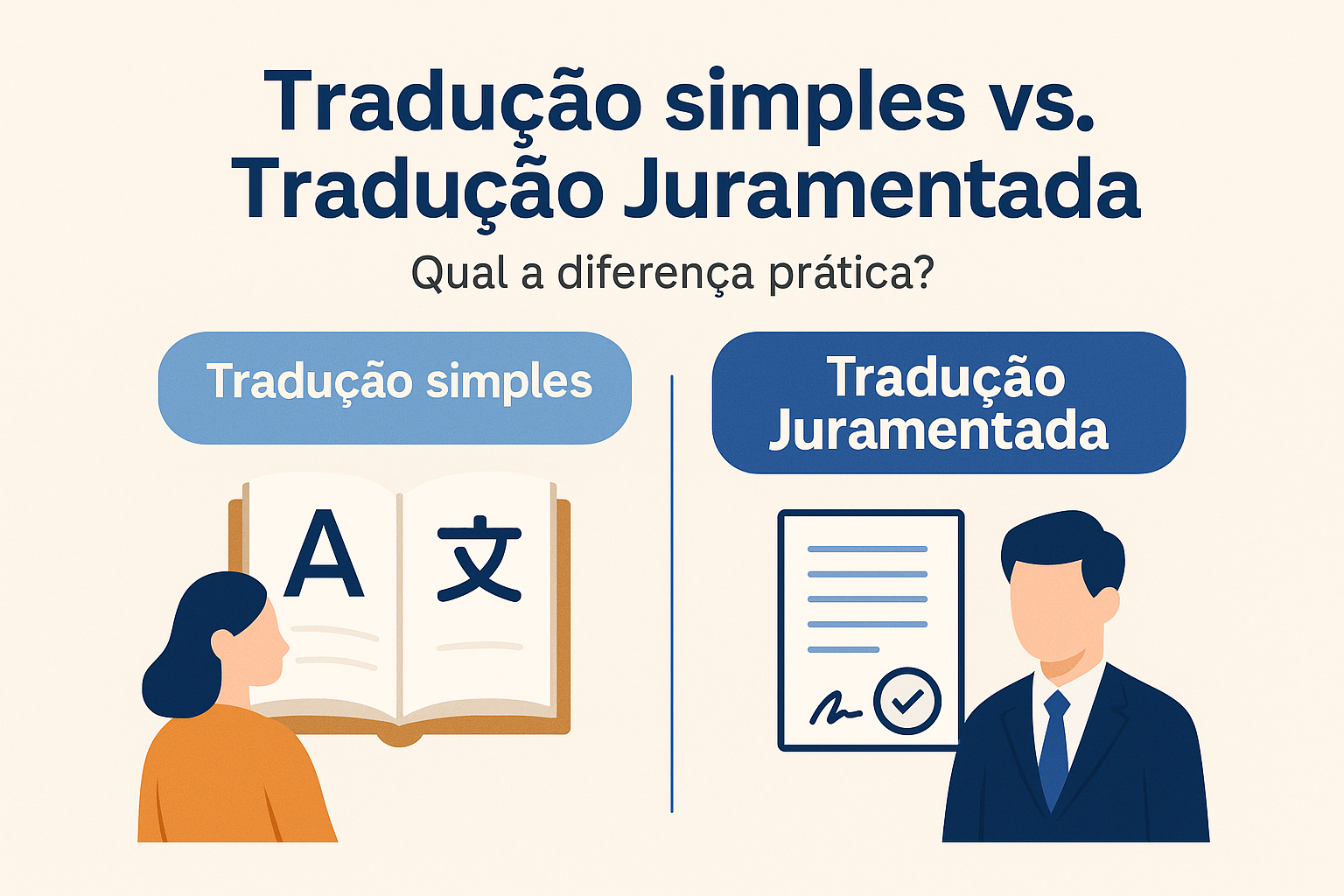 | Aspecto | Tradução Simples | Tradução Juramentada |